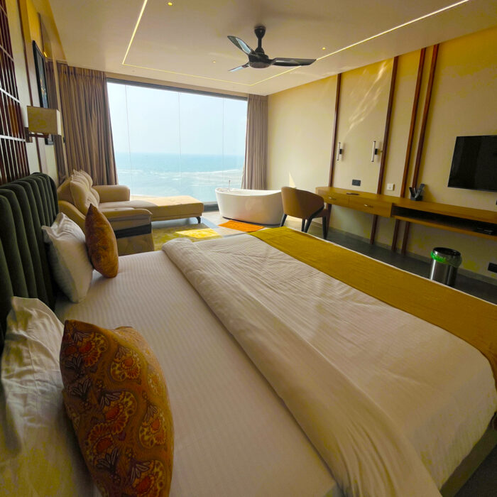 That is what clearly stands out for the resort situated on the ledge of a lush green hill overlooking the Arabian sea. Additionally, the room on the first floor was splendid and the view from its balcony was beautiful, and we really appreciate that they took care of most of the essentials in the room. The feel was nothing short of a premium property.